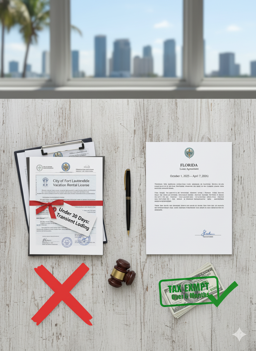 - Fort Lauderdale: Vacation-rental license required for ≤30 days. Monthly stays generally exempt (still meet safety codes).