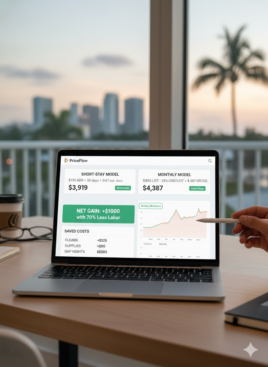 For South Florida investors, the opportunity is clear: this region blends year-round travel demand with seasonal peaks, healthcare and relocation traffic, and (in many cities) friendlier rules once you cross the 30-day line. In many cases, a well-priced monthly rental can earn similar gross revenue as weekly bookings—with less turnover, fewer gaps, and lighter management.