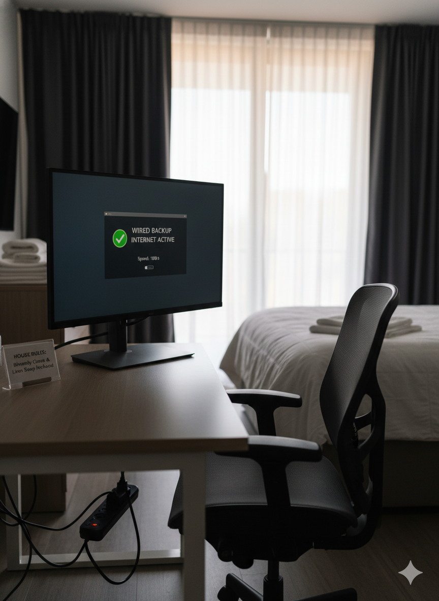 - Strong, reliable Wi-Fi (100 Mbps+) and a real desk setup.
