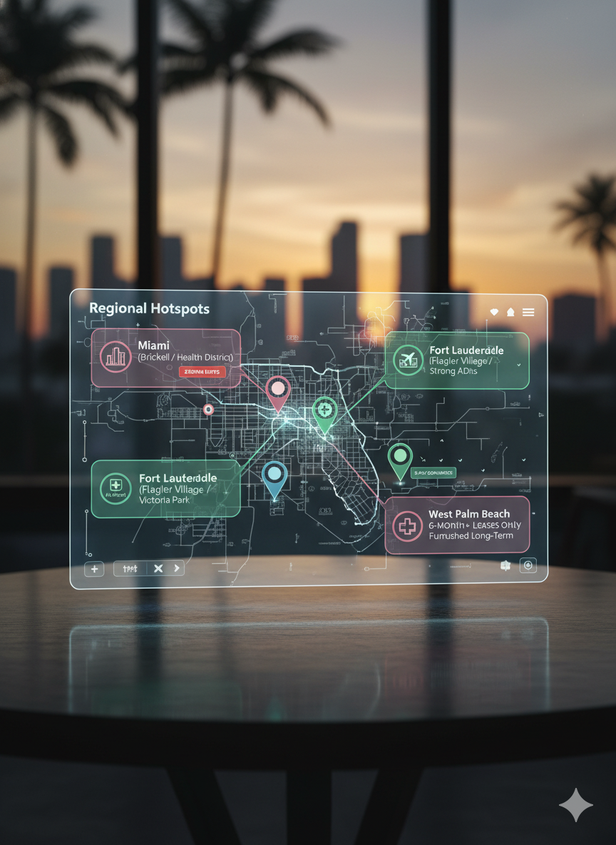 - Hollywood / Dania Beach: near FLL + Memorial Health; 30-day stays simplify compliance.