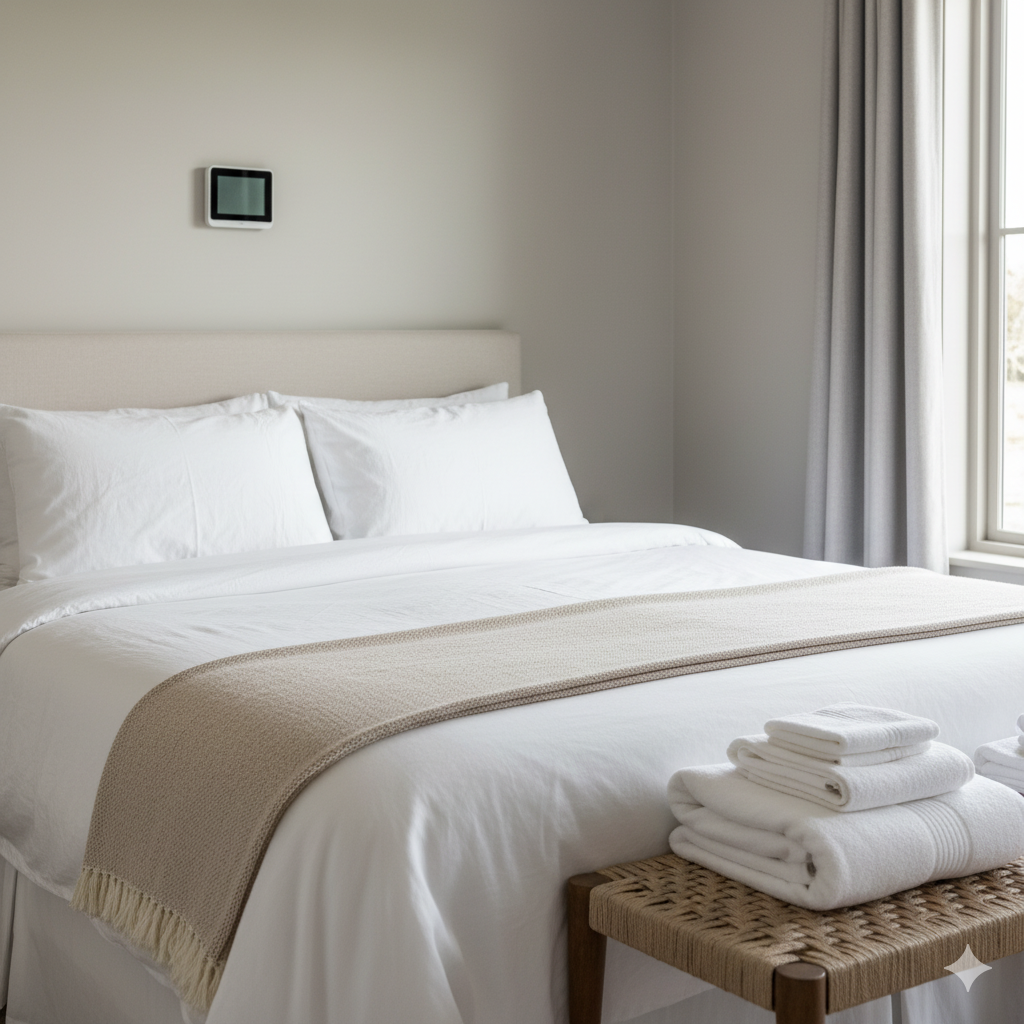 - Confirm linen, towel, and bedding inventory is complete and extra sets are staged.