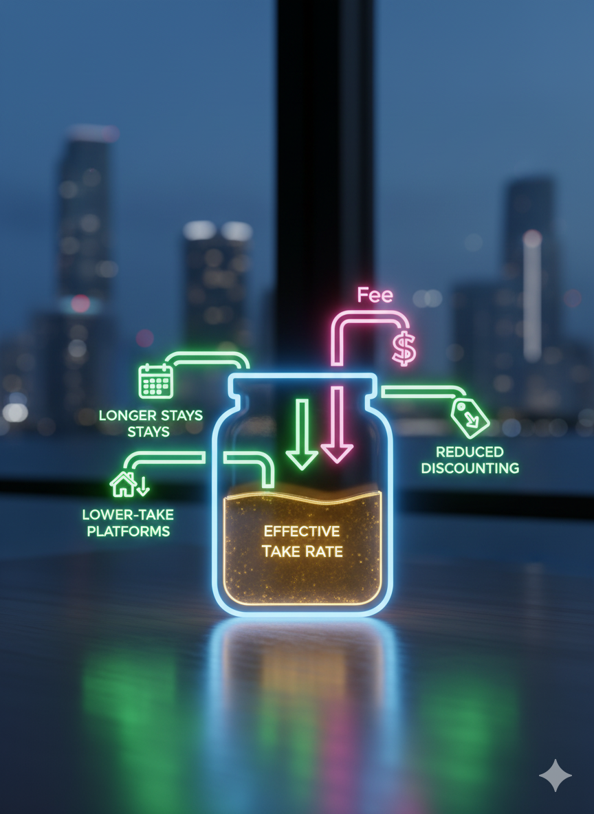Instead of reacting to Airbnb’s fee, define a fee-absorption allowance (e.g., 2–3 margin points) for priority dates or channels.
