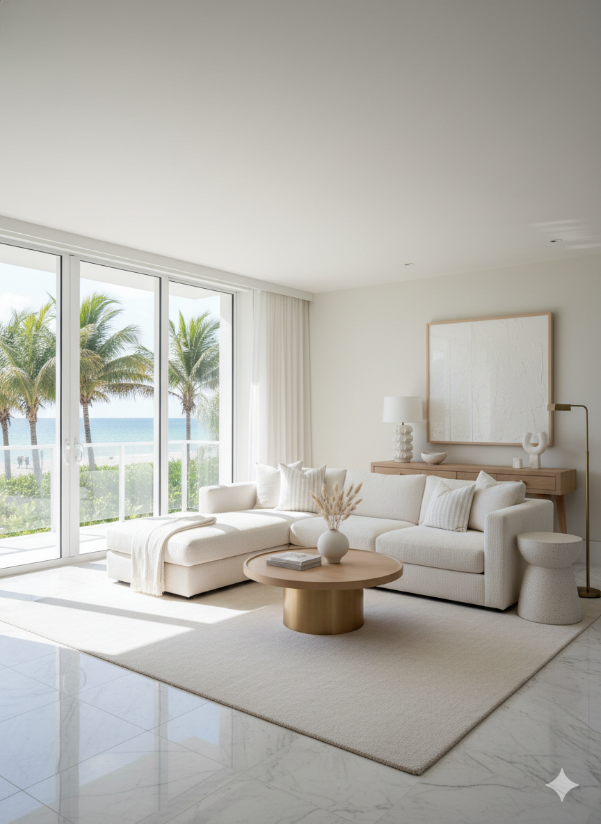 Pantone’s 2026 Color of the Year, Cloud Dancer (Pantone 11-4201), is a whisper-soft off-white that’s designed to feel calm, clean, and quietly elevated—without reading stark or sterile. For South Florida and beachside STRs, it’s the perfect “coastal neutral” because it photographs bright, works in intense sun, and pairs effortlessly with sand, driftwood, and sea-glass tones.